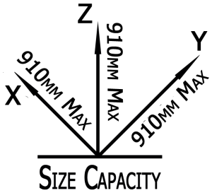 VERTICAL and HORIZONTAL Capacity: Working within a 910mm (36″) cube
